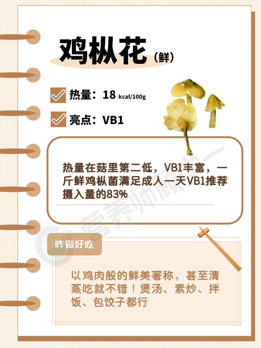 菌菇类的共同优点:低热量、低脂肪;膳食纤维丰富;大部分蔬菜中B族维生素不多而菌菇比较丰富。