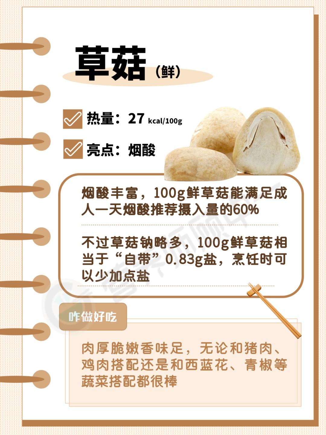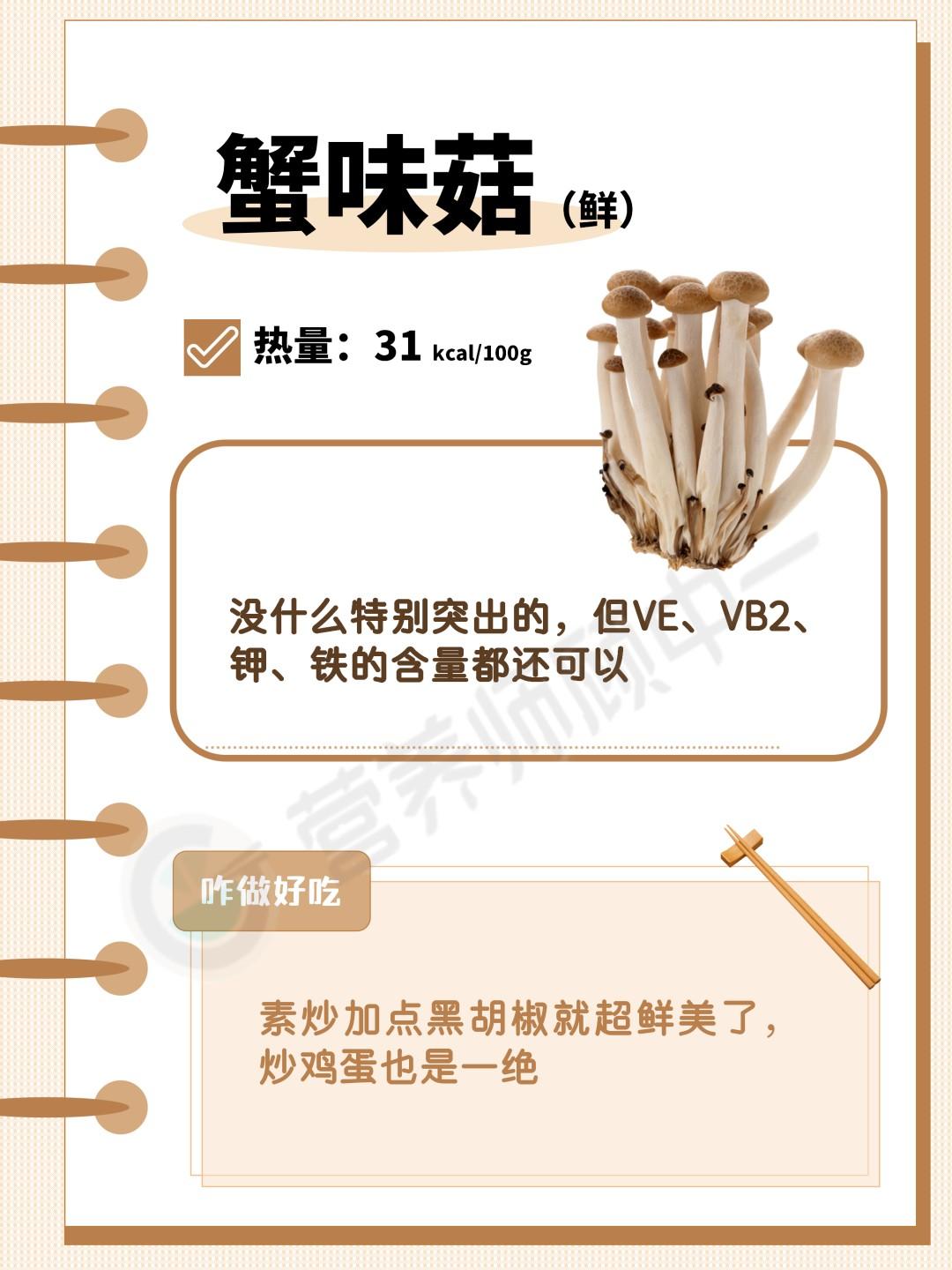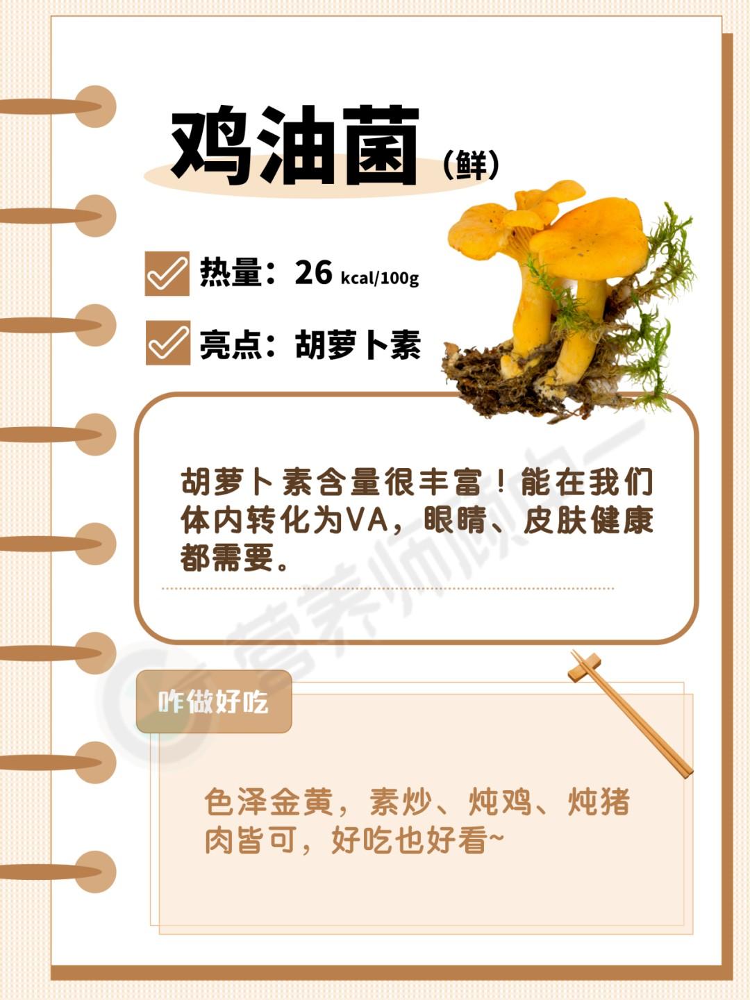 菌菇类的共同优点:低热量、低脂肪;膳食纤维丰富;大部分蔬菜中B族维生素不多而菌菇比较丰富。